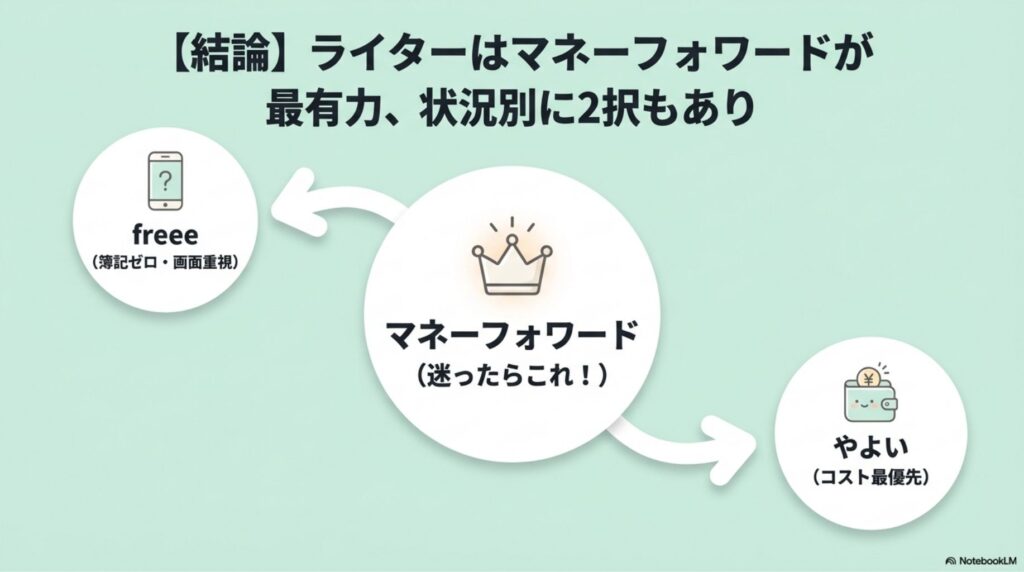 【結論】ライターはマネーフォワードが最有力、状況別に2択もあり