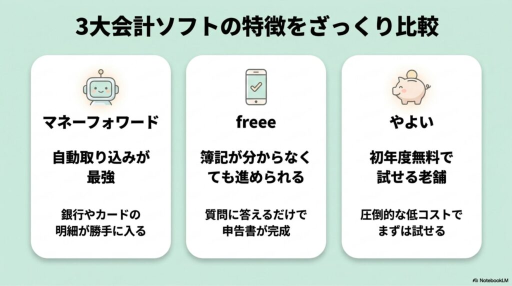 3大会計ソフトの特徴をざっくり比較