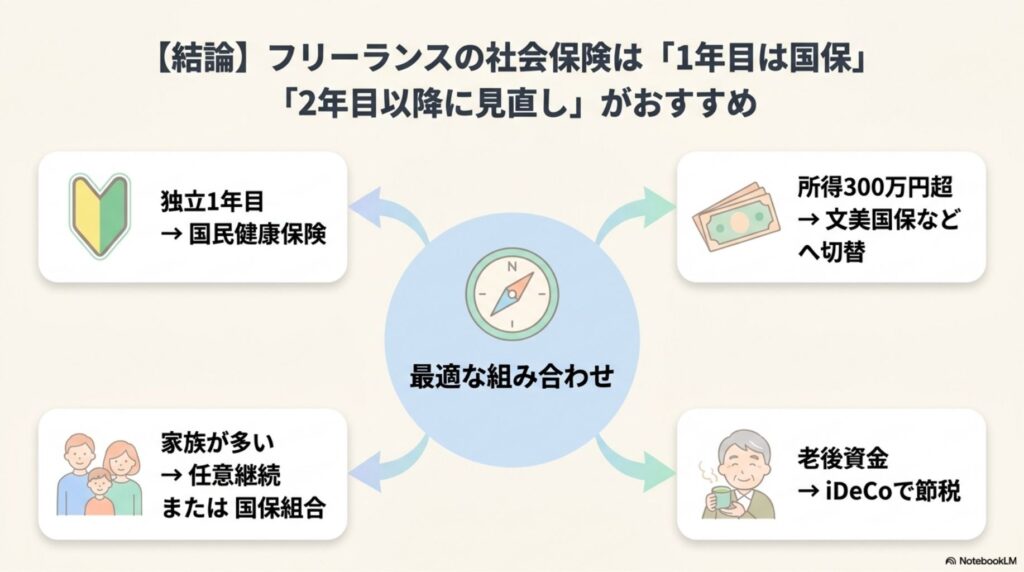 まとめ:自分に合う組み合わせを選んで、フリーランス生活を安心して続けよう
