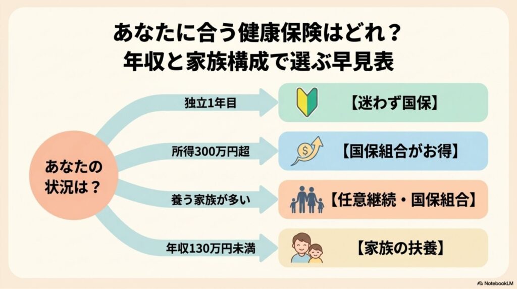 あなたに合う健康保険はどれ?年収と家族構成で選ぶ早見表